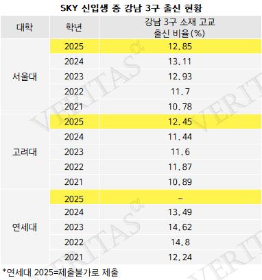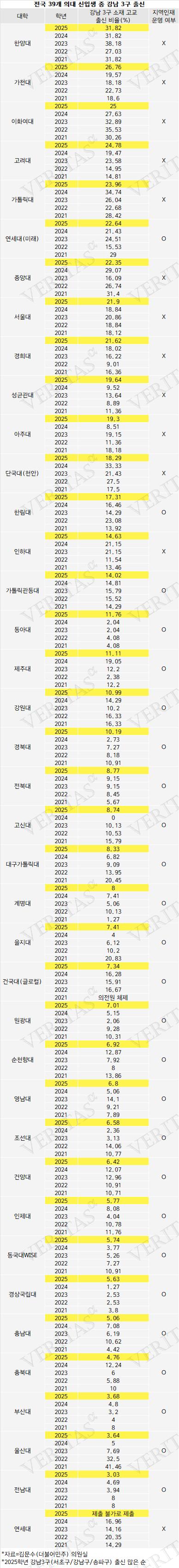 ƯÈ÷ SKYÀÇ °æ¿ì ÀÇ´ëÀÇ °³² 3±¸ Ãâ½Å ºñÀ²ÀÌ Àüü ½ÅÀÔ»ý ±âÁØ ºñÀ²º¸´Ù 2¹è°¡·® ³ô¾Ò´Ù. 2025Çг⠼¿ï´ë Àüü ½ÅÀÔ»ý Áß °³² 3±¸ Ãâ½Å ºñÀ²Àº 12.85%ÀÌÁö¸¸, ¼¿ï´ë ÀÇ´ë´Â 21.9%ÀÌ¸ç °í´ë´Â Àüü ½ÅÀÔ»ý Áß °³² 3±¸ Ãâ½Å ºñÀ²ÀÌ 12.45%ÀÌÁö¸¸, °í´ë ÀÇ´ë´Â 24.78%´Ù.