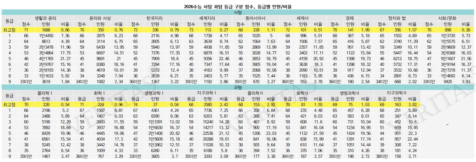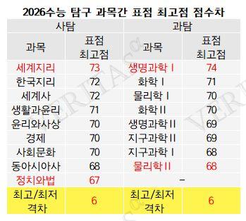 ޱ¸´Â Àü¹ÝÀûÀ¸·Î Áö³ÇØ¿Í ºñ½ÁÇÑ ³À̵µ¸¦ º¸¿´´Ù. »çŽ¿¡¼´Â Á¤Ä¡¿Í ¹ýÀÌ °¡Àå ½¬¿ü°í, ¼¼°èÁö¸®°¡ °¡Àå ¾î·Æ°Ô ÃâÁ¦µÆ´Ù. °úÇÐŽ±¸¿¡¼´Â Áö±¸°úÇÐI°ú ¹°¸®ÇÐII°¡ °¡Àå ½¬¿ü°í, »ý¸í°úÇÐIÀÌ °¡Àå ¾î·Æ°Ô ÃâÁ¦µÆ´Ù. ƯÈ÷ ¿ÃÇØ °ú¸ñ °£ Ç¥Á¡ °ÝÂ÷°¡ ´Ù¼Ò ¿ÏȵƴÙ. »çŽÀº Ç¥Á¡ ÃÖ°íÁ¡ ±âÁØ ¼¼°èÁö¸®(73Á¡)°ú Á¤Ä¡¿Í ¹ý(67Á¡)ÀÇ °ÝÂ÷°¡ 6Á¡ Â÷ÀÌ·Î Áö³ÇØ 11Á¡ Â÷¿Í ºñ±³Çϸé Å©°Ô ÁÙ¾ú´Ù. °úŽ ¿ª½Ã »ý¸í°úÇÐI(74Á¡)°ú Áö±¸°úÇÐI/¹°¸®ÇÐII(68Á¡)Àº 68Á¡À¸·Î 6Á¡ Â÷ÀÌ´Ù. Áö³ÇØ 8Á¡º¸´Ù °ÝÂ÷°¡ ÁÙ¾ú´Ù.